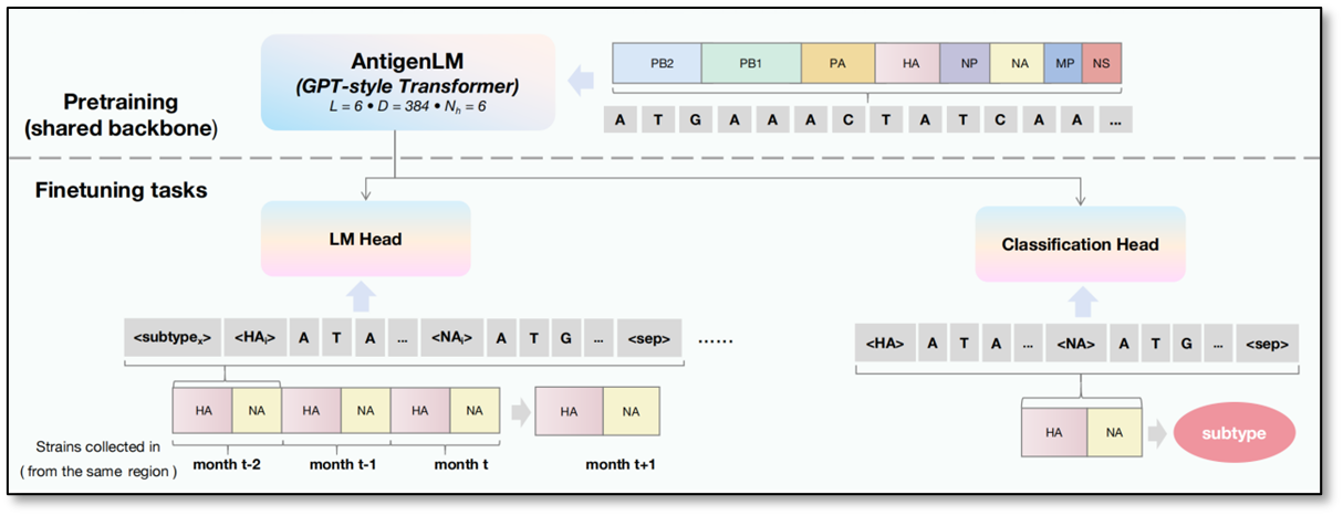 人工智能领域国际顶级会议 ICLR 2026 收录了国家生物信息中心的最新研究成果 AntigenLM。该工作聚焦于探索如何将生成式人工智能与病毒基因组结构先验深度融合,从而实现对流感抗原进化的高精度预测与亚型判别。